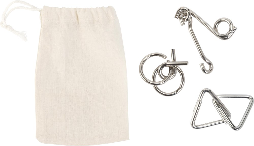 Baumwolletui Knobelspiele Nilo bedrucken 3-teilig Stahl 80g