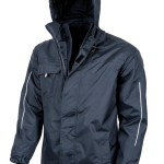 Die Jacke besteht aus 100% Polyester. Die Außenjacke verfügt über eine wasserdichte, im Kragen verstaubare Kapuze. Die Nähte sind hitzeversiegelt für maximale Dichtigkeit. Die Ärmel sind mit reflektierenden Elementen versehen. Die Jacke besitzt einen Zwei-Wege-Reißverschluss an der Front. Die Innenjacke wird per Reißverschluss befestigt. Sie verfügt über elastische Manschetten und praktische Fronttaschen.