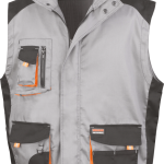 Das Gilet besteht aus einem strapazierfähigen Twill-Material (80% Polyester / 20% Baumwolle). Es verfügt über einen durchgehenden Reißverschluss mit schützender Sturmklappe. Der Kragen ist hochgeschlossen und wird per Klettverschluss gesichert. Die Taille ist teilweise elastisch für eine flexible Passform. Mehrere Multifunktionstaschen bieten praktischen Stauraum. Die Nähte sind zur Verstärkung stabil ausgeführt. Das Gilet hat wasserabweisende Eigenschaften. Diese bleiben bis zu 12 Waschzyklen aktiv.