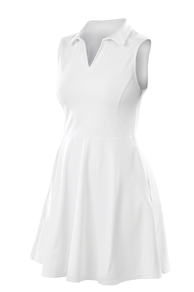 Das Sportkleid ist ärmellos und verfügt über einen klassischen Kragen.