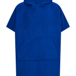 Der Kapuzenponcho besteht aus 100 % Polyester-Mikrofaser. Das Material ist bekannt für seine schnelle Trocknung und geringes Gewicht. Er verfügt über eine fest integrierte Kapuze. Eine geräumige Kängurutasche ist auf der Vorderseite angebracht. In den Größen 9 und 13 Jahren beinhaltet die Tasche ein zusätzliches innenliegendes Fach. Seitliche Schlitze garantieren eine gute Bewegungsfreiheit beim Tragen.