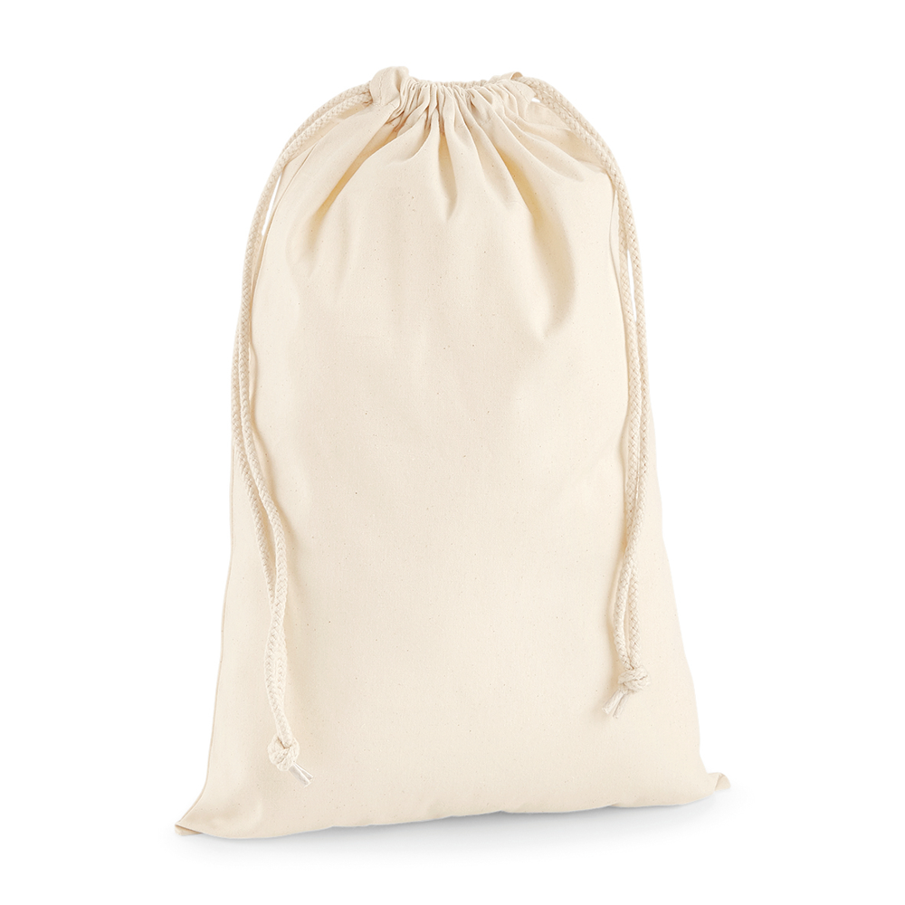 Es handelt sich um eine strapazierfähige Kordelzugtasche aus 100% Baumwolle.