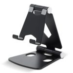 Dieser Smartphone-Ständer besteht aus robustem, hochwertigem Aluminium. Das Design ist vollständig faltbar für einfache Lagerung. Die Halteplatte verfügt über rutschfeste Pads. Diese sorgen für maximale Stabilität auf glatten Oberflächen. Durch das offene Design am Boden kannst du Ladekabel oder Kopfhörer anschließen. Du passt Höhe und Neigungswinkel individuell an deine Bedürfnisse an.