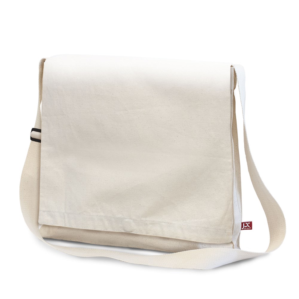 Die Canvas-Schoudertasche ist für die Personalisierung vorgesehen.