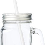 Material: Klares Glas. Fassungsvermögen: 480 ml. Der Verschluss ist ein silberfarbener Metall-Deckel. Dieser Deckel besitzt eine Aussparung für den Trinkhalm. Der mitgelieferte Trinkhalm besteht aus Kunststoff. Der Glaskrug Sakina ist robust und für den wiederholten Gebrauch bestimmt. Die Abnahme erfolgt gemäß der Mindestbestellmenge.