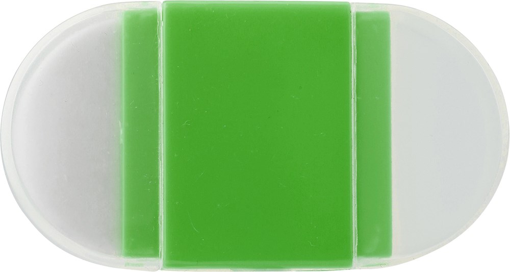 Das Produkt kombiniert einen Spitzer mit einem Radiergummi.