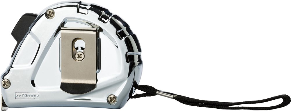 Das Messwerkzeug dient als Streuartikel für Messen oder als Arbeitsmittel für gewerbliche Abnehmer. Es verfügt über eine Bandlänge von drei Metern für den universellen Einsatz.
