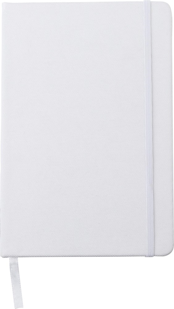 Das Notizbuch besitzt das gängige DIN A5 Format. Der Einband ist aus recyceltem PET (rPET) und PU gefertigt. Es beinhaltet 80 Seiten Schreibpapier. Das Papiergewicht beträgt 70 g/m². Ein passendes Gummiband hält das Notizbuch sicher verschlossen. Ein integriertes Lesebändchen dient als praktische Markierung. Du hast die Wahl zwischen den Farben Weiß, Schwarz, Rot und Blau.