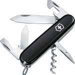 Das Taschenmesser verfügt über insgesamt zwölf integrierte Funktionen. Dazu gehören eine kleine und eine große Klinge. Ebenfalls enthalten sind ein Dosenöffner und ein Flaschenöffner. Sie finden einen Korkenzieher, einen Drahtabisolierer und eine Stech- und Bohrahle. Zwei Schraubendreher (3 mm und 6 mm) sind in das Werkzeug integriert. Vervollständigt wird das Set durch einen Zahnstocher, eine Pinzette und einen Schlüsselring. Das Victorinox Taschenmesser Spartan ist in den Farben Schwarz und Rot erhältlich.