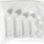 Das 6-teilige Reise-Set besteht aus strapazierfähigem PETG. Das Material ist für den Transport von Kosmetika geeignet. Im Set enthalten sind zwei Flaschen á 100 ml. Weiterhin sind zwei Flaschen á 50 ml im Lieferumfang. Du erhältst zusätzlich zwei kleine Flaschen á 10 ml. Ein kleiner Löffel ist ebenfalls enthalten. Die Farbe des Sets ist neutral gehalten.