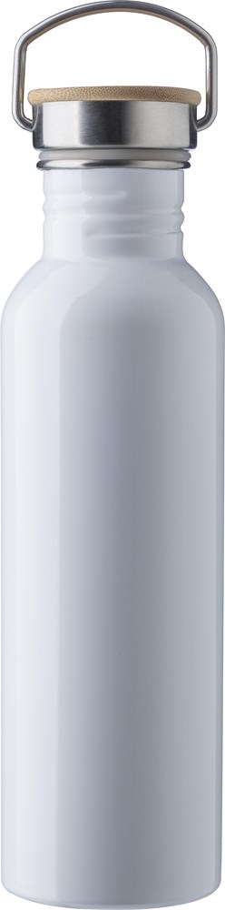 Diese Edelstahl-Trinkflasche ist ein hochwertiges Werbemittel. Die Flasche fasst 700 ml. Sie besteht aus robustem, einwandigem RVS (Edelstahl 304). Der Schraubverschluss ist aus nachhaltigem Bambus gefertigt. Du erhältst die Trinkflasche in verschiedenen Farben wie Weiß, Schwarz, Silber und Blau.