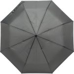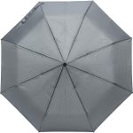 Dieser Regenschirm ist mit acht stabilen Paneelen ausgestattet. Er besitzt einen ergonomisch geformten Griff aus Kunststoff. Die Kombination aus Metall und flexiblem Fiberglas im Gestell gewährleistet Widerstandsfähigkeit gegen Wind. Das Pongee-Material (180T) ist wasserabweisend und schnelltrocknend. Das automatische System ermöglicht ein schnelles Öffnen auf Knopfdruck.