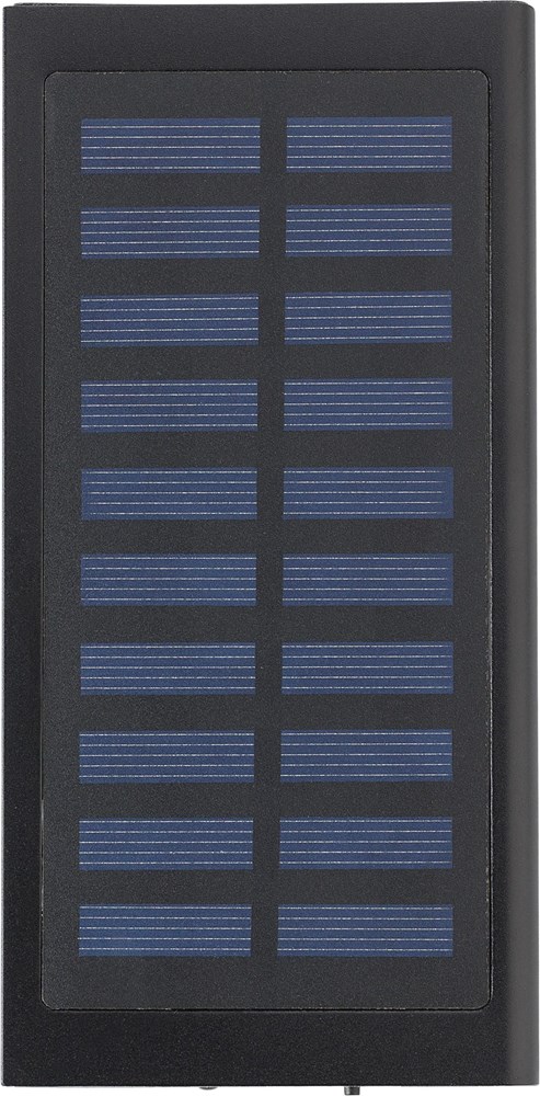 Diese Solar Powerbank ist ein mobiles Ladegerät mit integriertem Solarpanel. Die Powerbank ermöglicht Ihnen das Aufladen Ihrer Geräte auch ohne Steckdose. Sie verfügt über eine Kapazität von 8.000 mAh. Die Hülle kombiniert robustes ABS-Material mit Aluminium. Dieses Gadget dient als funktionales Werbegeschenk. Die Solar Powerbank ist primär für Geschäftskunden, Vereine und Events konzipiert.