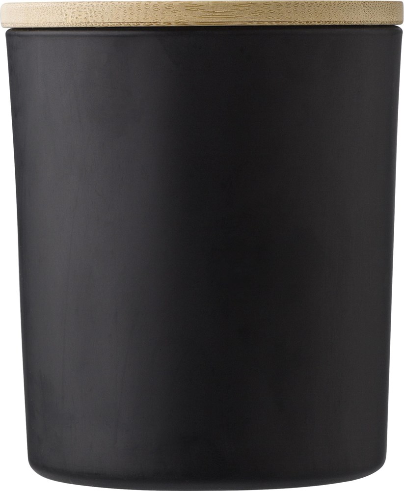 Die Kerze besteht aus pflanzlichem Wachs und einem Bambusdeckel. Die garantierte Brenndauer beträgt circa 20 Stunden. Die Glaskerze ist in den Farben Weiß, Schwarz, Rot und Grün erhältlich. Das Produkt wird einzeln verpackt geliefert. Die Kerze ist eine umweltbewusste Wahl für deine Werbeaktionen.
