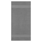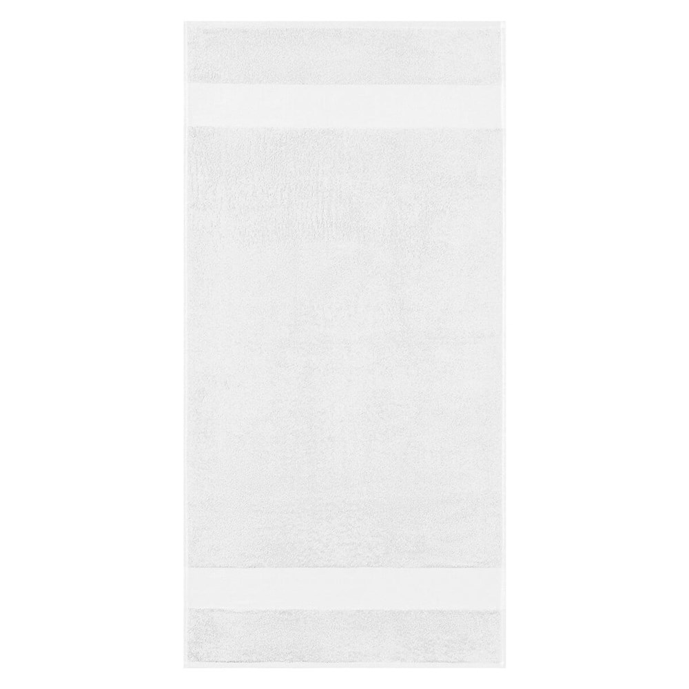 Das Handtuchmaterial ist 100 % recycelte Baumwolle. Die Grammatur liegt bei 450 Gramm pro Quadratmeter. Das Maß ist 100 mal 50 Zentimeter. Es ist ein pflegeleichtes und robustes Produkt. Die beiden Zierbänder sorgen für eine hochwertige Optik. Die Farbauswahl bietet flexible Branding-Optionen.
