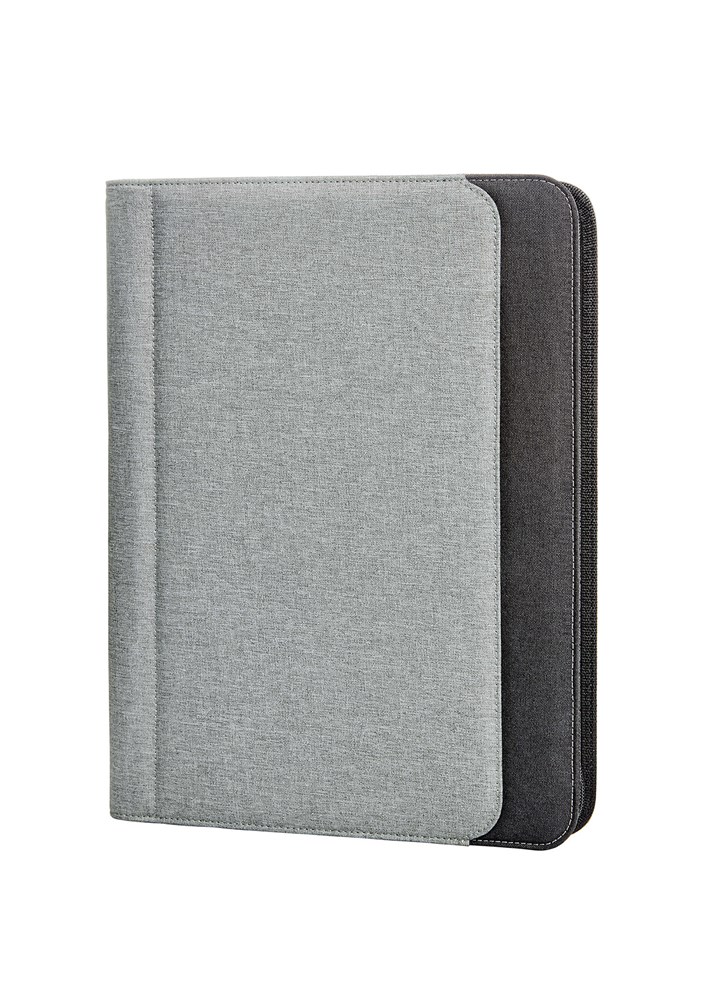 Die Konferenzmappe ist im DIN A4 Format gehalten. Sie besitzt ein Hauptfach, das per Reißverschluss vollständig geschlossen wird. Auf der Vorderseite befindet sich ein flaches Steckfach. Im Inneren bietet die Mappe diverse Steckfächer für Visitenkarten. Gummi-Schlaufen halten Stifte oder USB-Sticks sicher fest. Ein spezieller Klettverschluss dient zur Befestigung kleinerer digitaler Geräte. Ein passender Schreibblock ist im Lieferumfang enthalten.