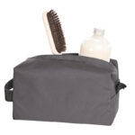 Der Kulturbeutel ist rechteckig geformt und bietet viel Stauraum. Das RPET-Material ist widerstandsfähig und pflegeleicht. Das Hauptfach lässt sich mit einem großen 2-Wege-Reißverschluss verschließen. Im Inneren ist ein praktisches Netzfach integriert. Seitliche Griffschlaufen vereinfachen das Öffnen der Tasche. Ein stabiler Handgriff dient dem leichten Transport. Die Waschtasche ist in den Farben Schwarz, Grün, Marineblau und Anthrazit verfügbar.