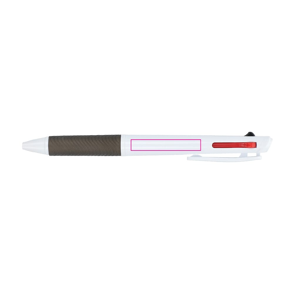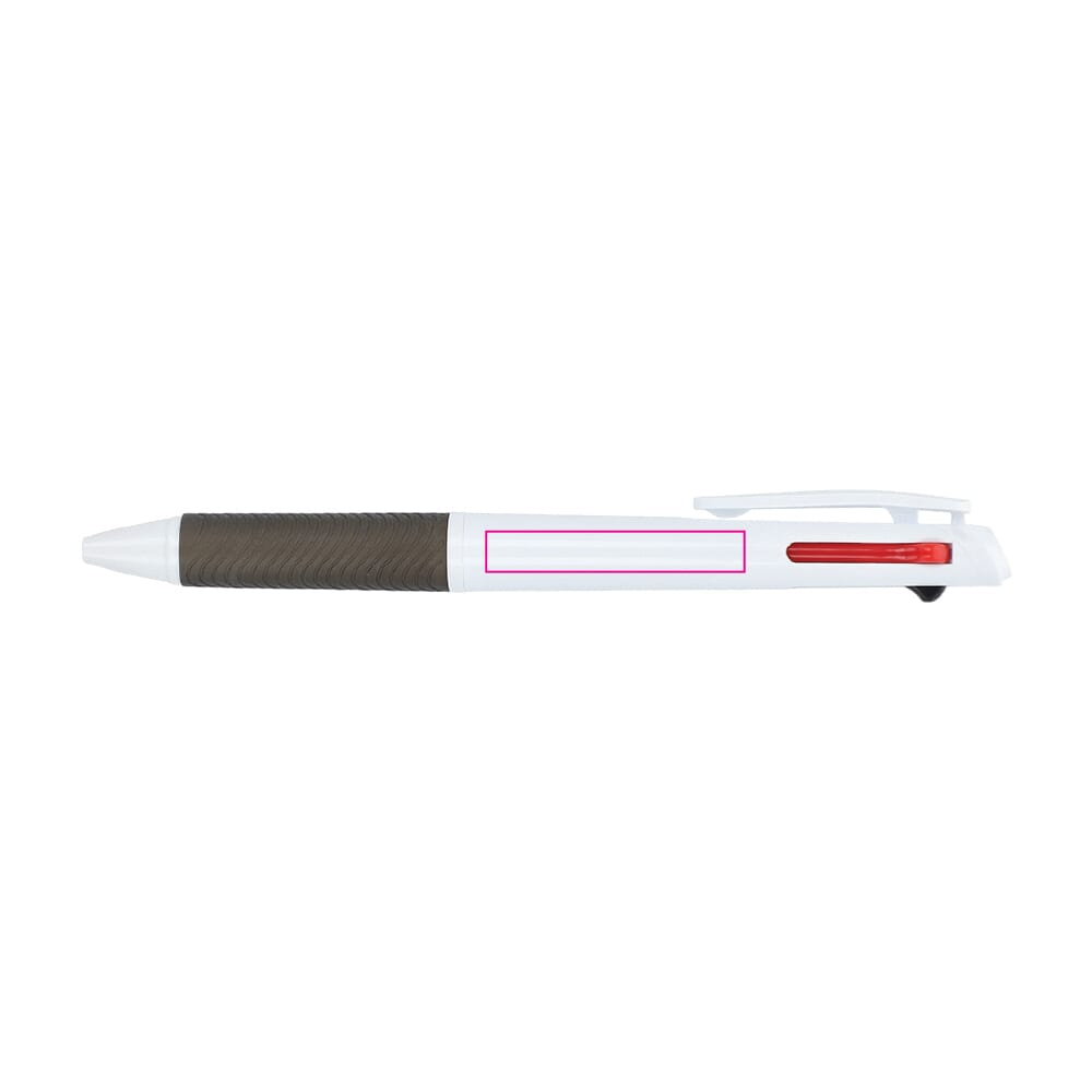 Der 3-Farben-Kugelschreiber ist für eine individuelle Personalisierung vorgesehen. Wir bedrucken den Schaft des Stifts präzise mit deinem Firmenlogo. Du wählst die gewünschte Druckfarbe und -position. Die Personalisierung verwandelt den Stift in einen einzigartigen Markenbotschafter. Sende uns dein Design für eine professionelle Veredelung zu. Wir stellen sicher, dass dein Logo optimal zur Geltung kommt.