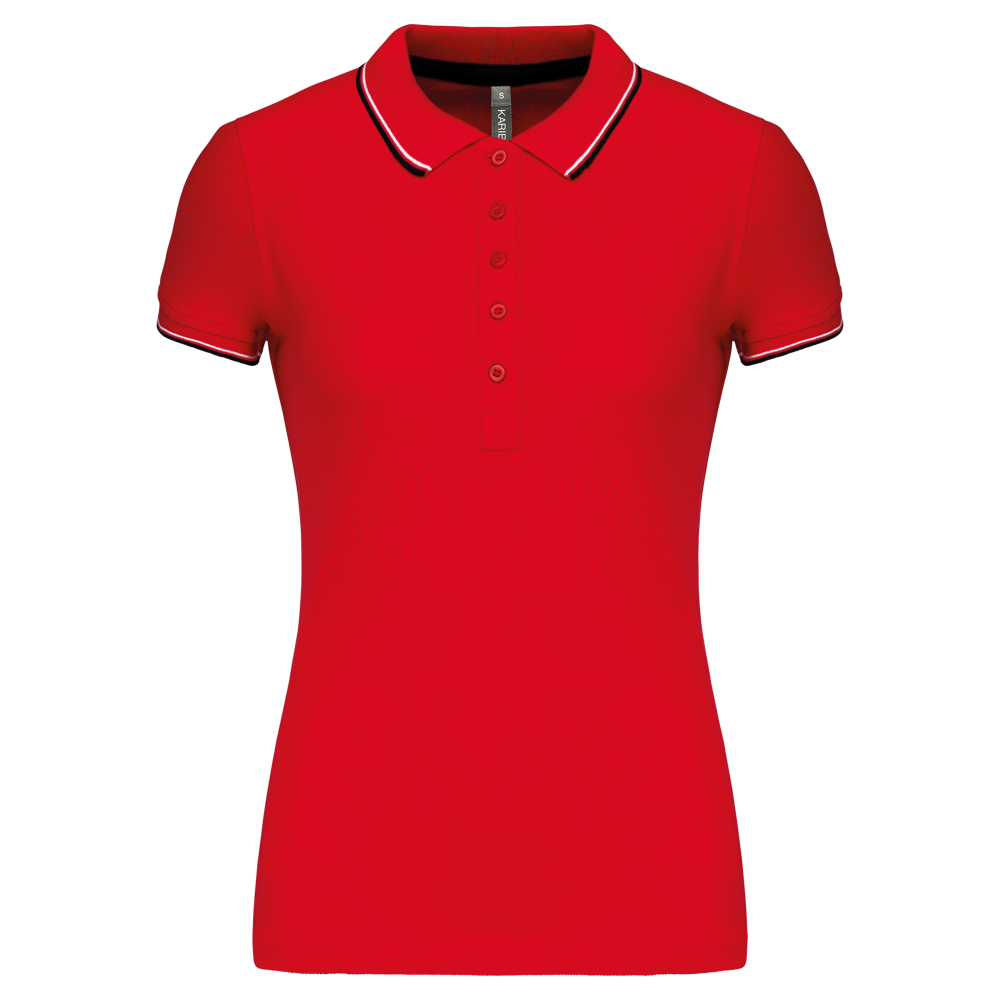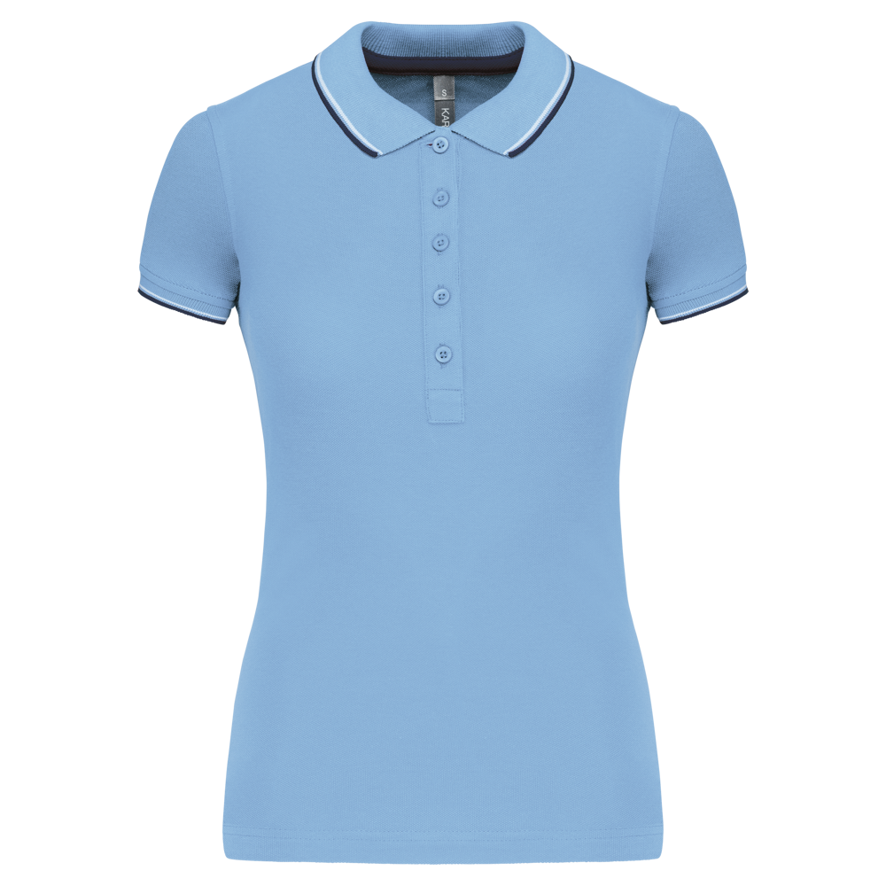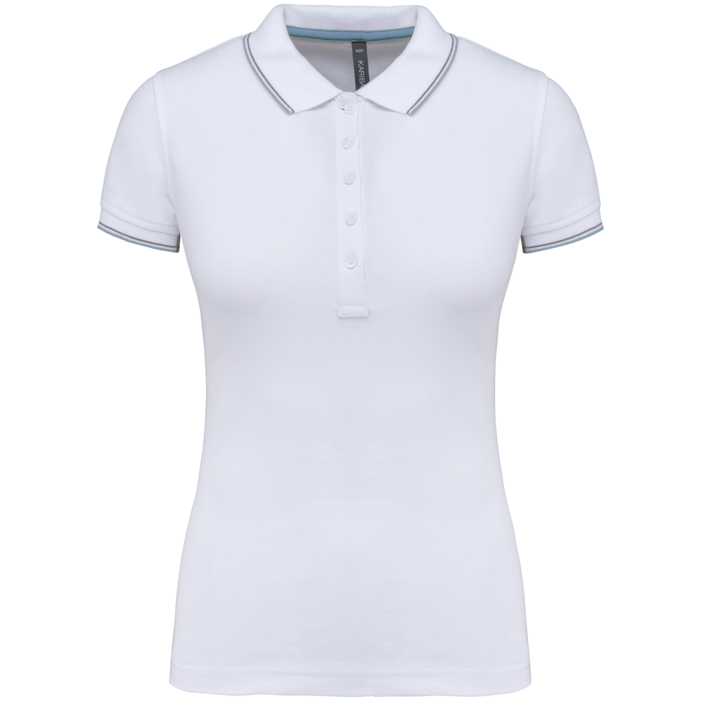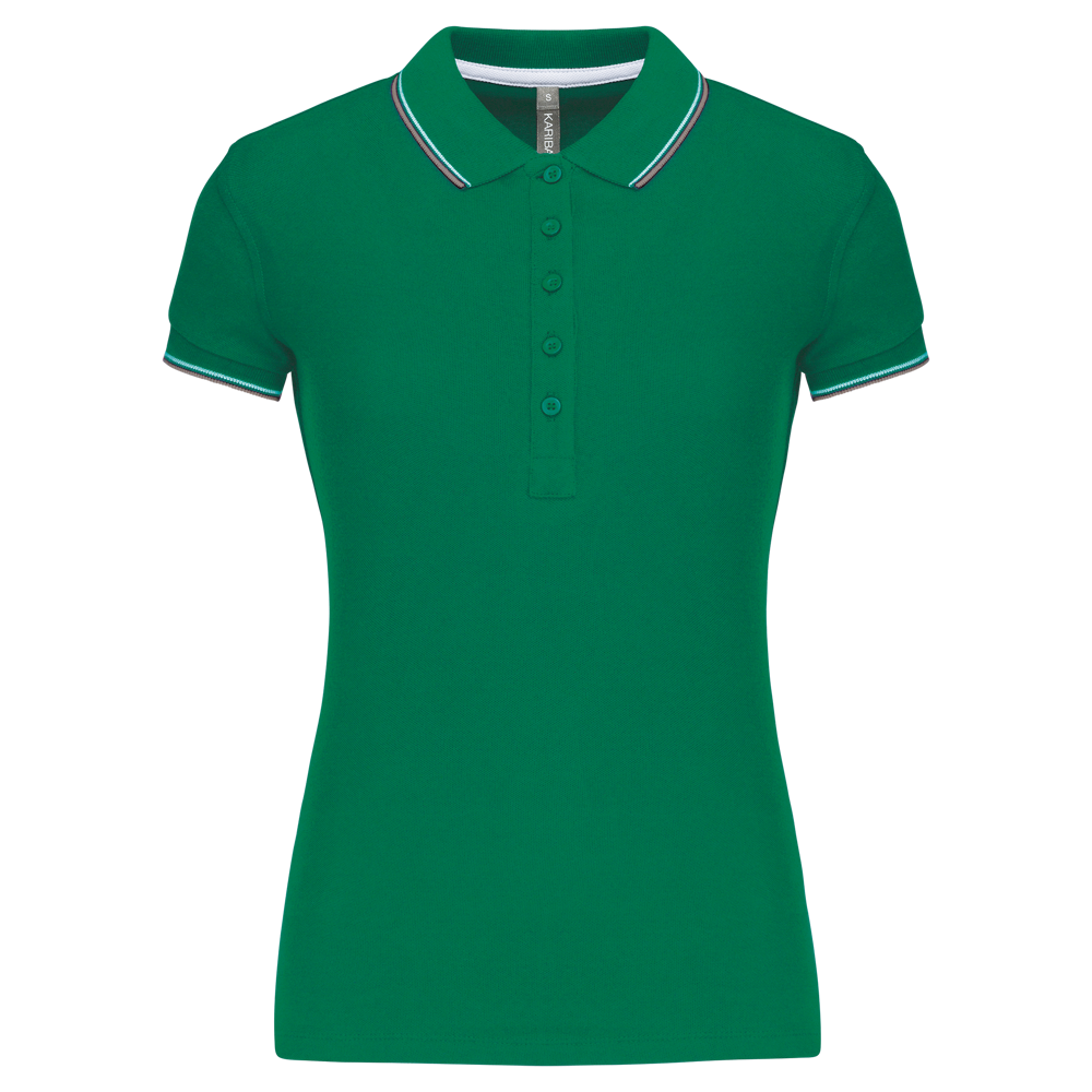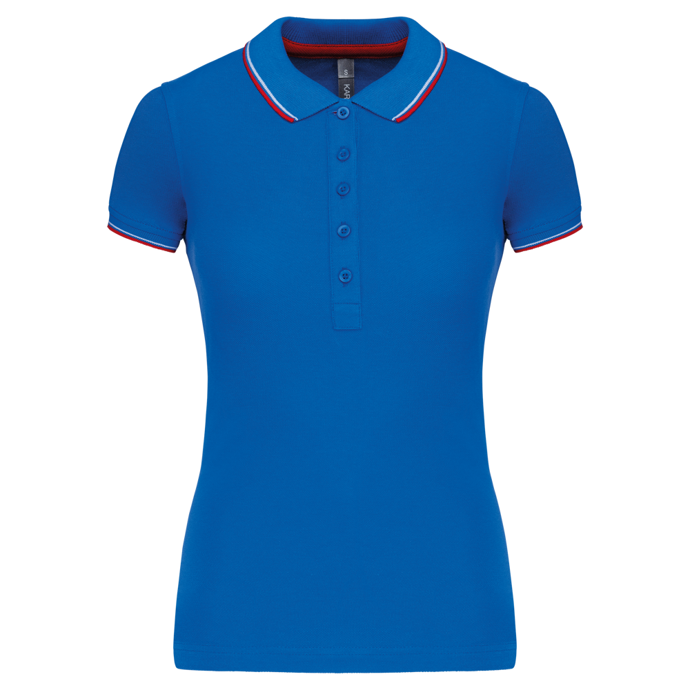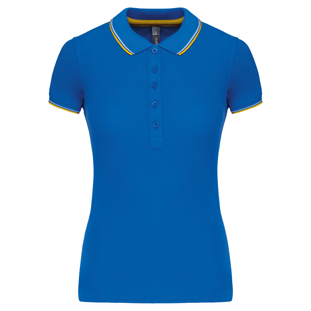 Du erhältst ein klassisch geschnittenes Kurzarm-Poloshirt für Damen.
