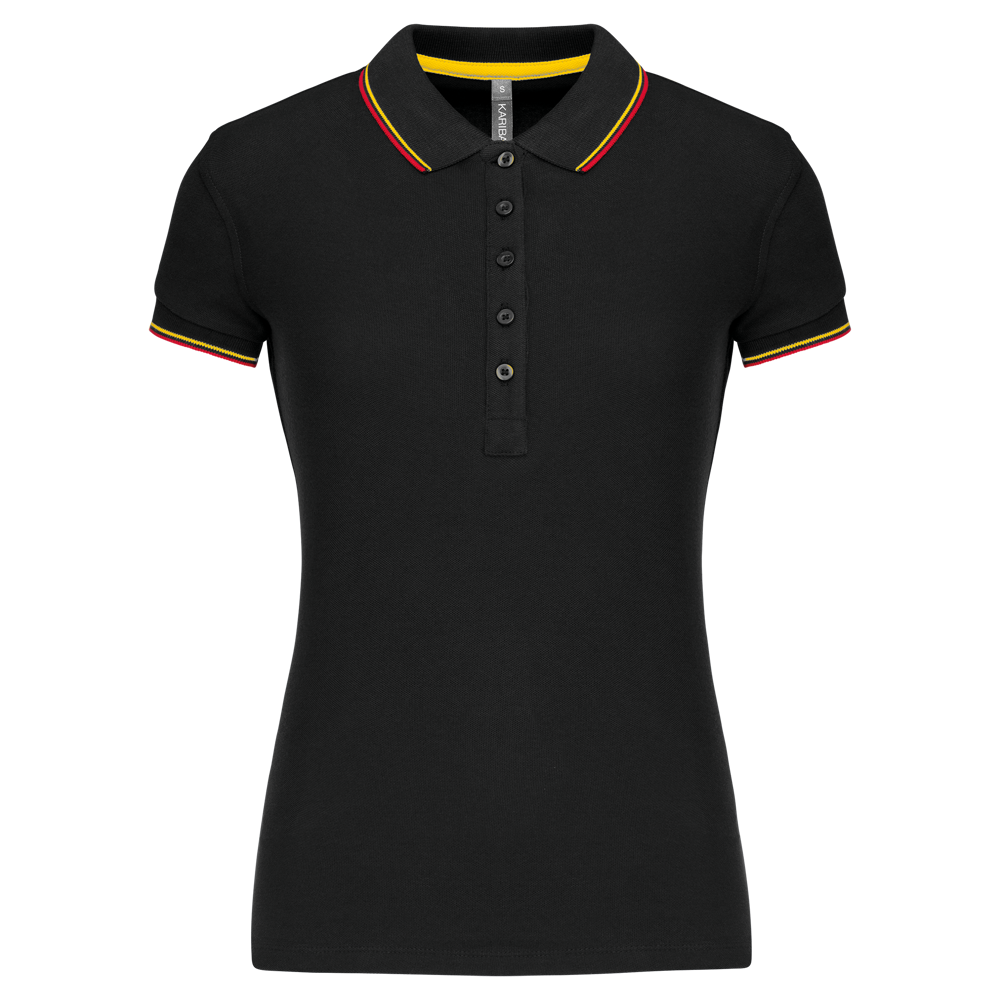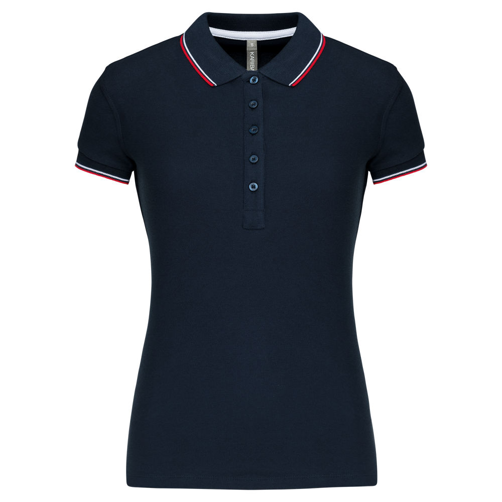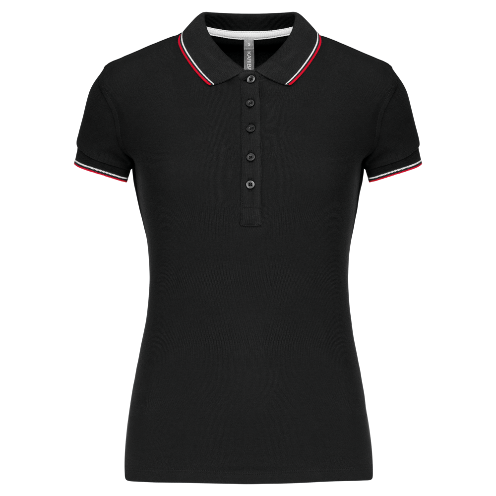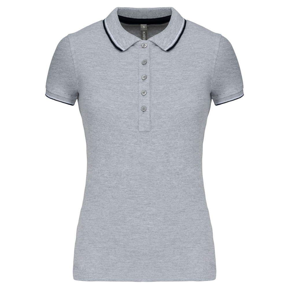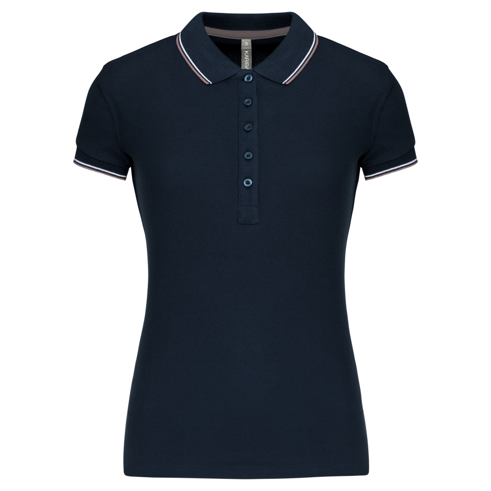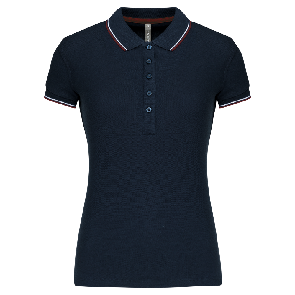 Du erhältst ein klassisch geschnittenes Kurzarm-Poloshirt für Damen.