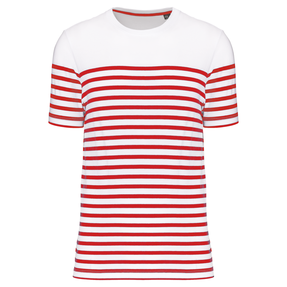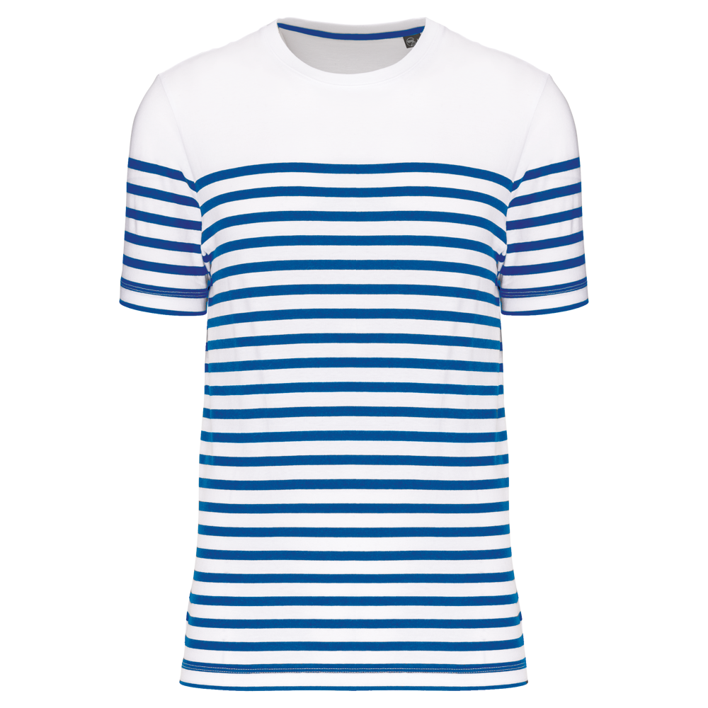Nutzen Sie dieses gestreifte Bio-T-Shirt für Ihren professionellen Auftritt.