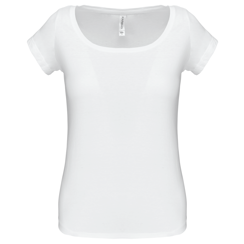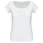 Du suchst ein hochwertiges Damen T-Shirt für deine Promotion-Aktionen. Dieses Kurzarm-Shirt besteht aus 100% Baumwolle. Es zeichnet sich durch seinen eleganten U-Boot-Ausschnitt aus. Der Schnitt ist bewusst tailliert, um eine gute Passform zu gewährleisten. Du kannst dieses T-Shirt mit deinem eigenen Logo bedrucken lassen.