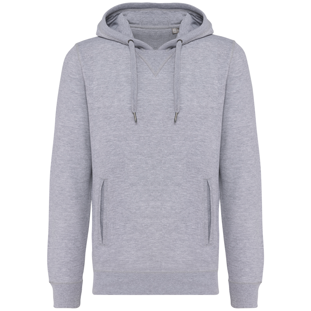 Dieser ökologische Uniseks-Hoodie besteht aus hochwertigem Bio-Baumwoll-Mischgewebe. Du erhältst einen komfortablen Sweater mit Kapuze und einer geraden Passform. Das Material kombiniert 80% Bio-Baumwolle mit 20% recyceltem Post-Consumer-Polyester. Die Variante Oxford Grey nutzt 75% Bio-Baumwolle und 25% recyceltes Polyester. Der Stoff ist als Fleece French Terry (LST - Low Shrinkage Terry) ausgeführt und enzymgewaschen. Der Hoodie verfügt über zwei paspelierte Fronttaschen. Rippbündchen befinden sich an Ärmelenden, Saum und am Rand der gefütterten Kapuze. Die Kapuze ist mit Ton-in-Ton-Kordelzügen und Metallenden ausgestattet. Der Nackenbereich besitzt eine halbmondförmige Öffnung sowie ein Fischgrät-Nackenband im Kragen. Ein V-Abschluss am Halsausschnitt ist vorhanden. Dieser Sweater ist ideal für Branding, da er kein sichtbares Markenlabel, sondern nur ein Größenetikett im Kragen aufweist.