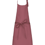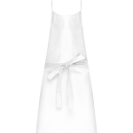 Die Standardausführung besteht aus 65 % Polyester und 35 % Baumwolle. Abweichend davon haben Denim-Artikel einen Baumwollanteil von 65 %. Die Schürze wird in One-size geliefert. Die Maße betragen 90 cm in der Höhe und 76 cm in der Breite. Der Nackenriemen ist stufenlos über eine Metallschnalle in der Länge verstellbar. Dieses Modell ist bewusst ohne Tasche gestaltet.