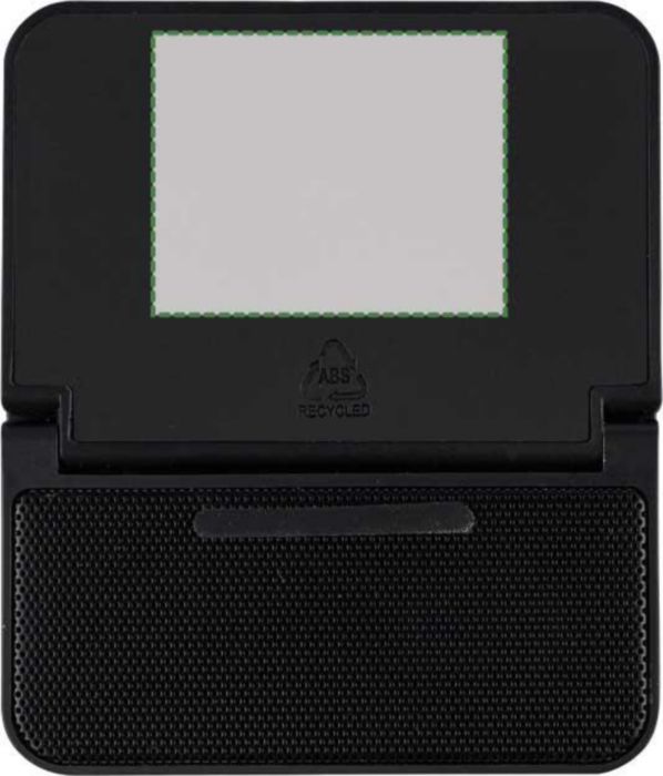 Der kabellose Ladegerät Elias ist eine multifunktionale 3-in-1 Ladestation. Das Gerät kombiniert kabelloses Laden, einen Bluetooth-Lautsprecher und einen Smartphone-Halter. Es ist in einem klaren, kubusförmigen Design gehalten. Dieses Gadget ermöglicht schnelles Laden mit 15 Watt Leistung. Das Gehäuse wird aus recyceltem ABS (rABS) hergestellt. Es eignet sich hervorragend zur Personalisierung mit deinem eigenen Firmenlogo.