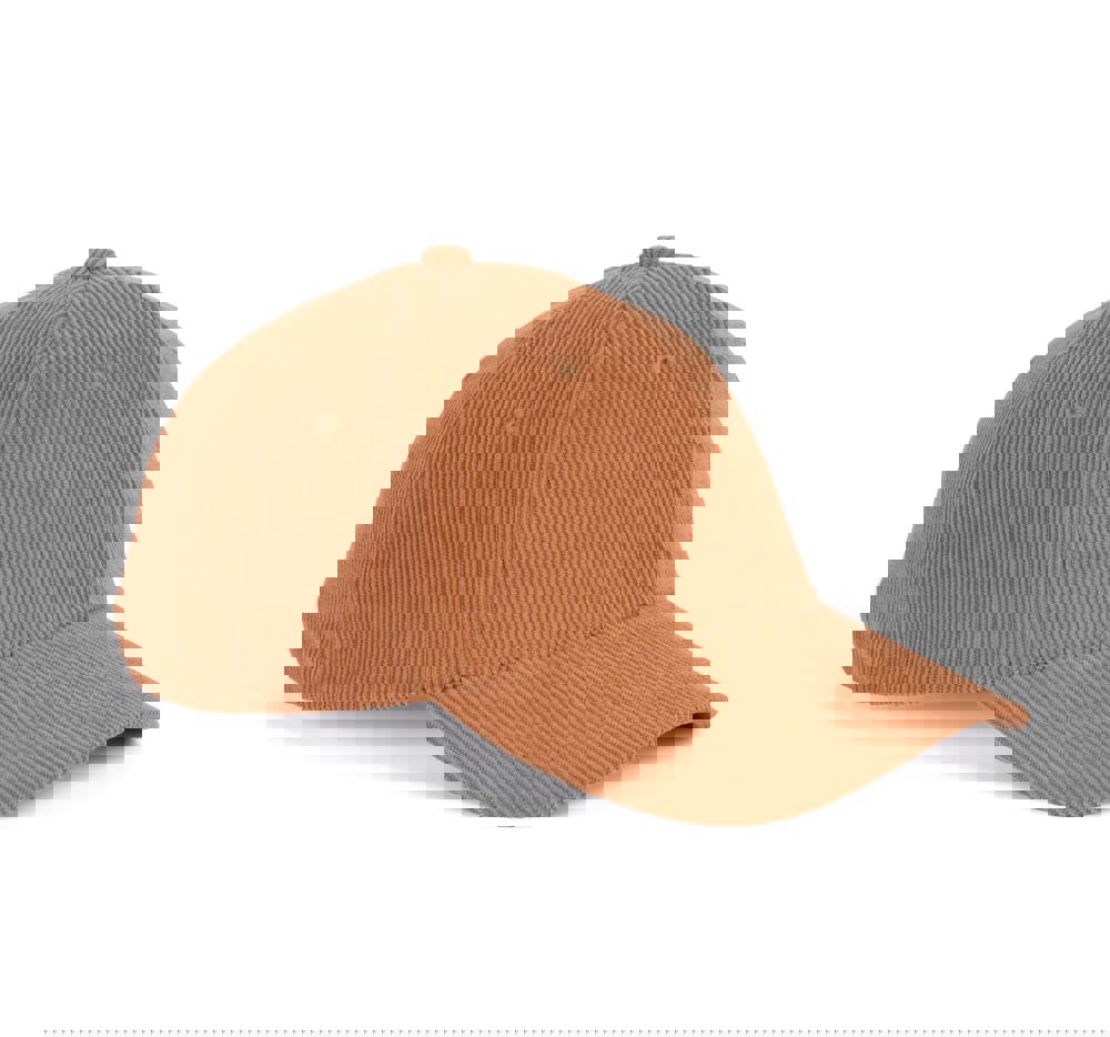 Diese Cord-Kappe ist eine klassische sechsteilige Baseballkappe.