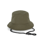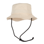 Das eingenähte Tear-Away-Label lässt sich leicht entfernen. Der Bucket Hat ist in den Farben Light Khaki, Oxyde Grey, River Blue und Sea Sand erhältlich. Er ist ein langlebiges Werbemittel.