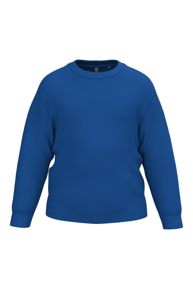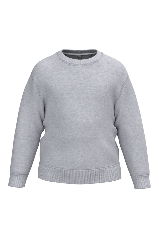 Material: 50 % ringgesponnene Baumwolle, 50 % Post-Consumer recyceltes Polyester. Innenmaterial: Weiches, gebürstetes Fleece. Der Schnitt ist gerade ausgeführt. Hals, Ärmelbündchen und Saum sind aus 2x1 Rippstrick gefertigt. Das Sweatshirt ist enzymgewaschen. Schulternähte und Ärmelansätze sind mit Doppelstichen verarbeitet.