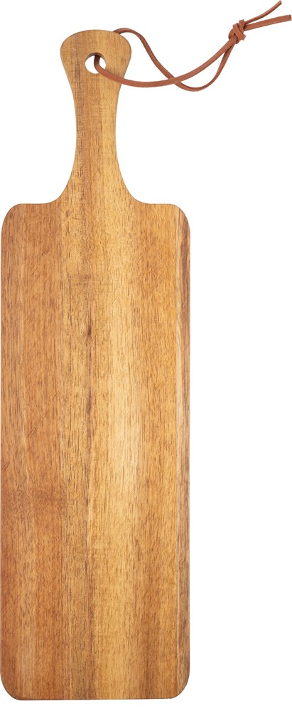 Dieses Produkt ist ein hochwertiges Servier- und Schneidebrett aus nachhaltigem Akazienholz. Das Brett verfügt über einen praktischen Griff. Am Griff ist eine Kordel aus PU zur einfachen Aufhängung befestigt. Das Akazienholzbrett ist robust und langlebig. Das Servierbrett Walter eignet sich ideal als gehobenes Werbegeschenk.