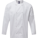 Die Kochjacke Coolchecker PR903 mit langen Ärmeln ist für den professionellen Einsatz in der Gastronomie konzipiert. Diese Jacke bietet dir hohen Tragekomfort bei anspruchsvollen Arbeitsbedingungen. Das Design kombiniert Funktionalität mit einem sauberen, professionellen Auftritt. Du kannst diese Jacke gezielt mit deinem eigenen Logo bedrucken oder besticken lassen. Sie ist in den Größen XS bis XXL erhältlich und in den Farben Schwarz und Weiß verfügbar.