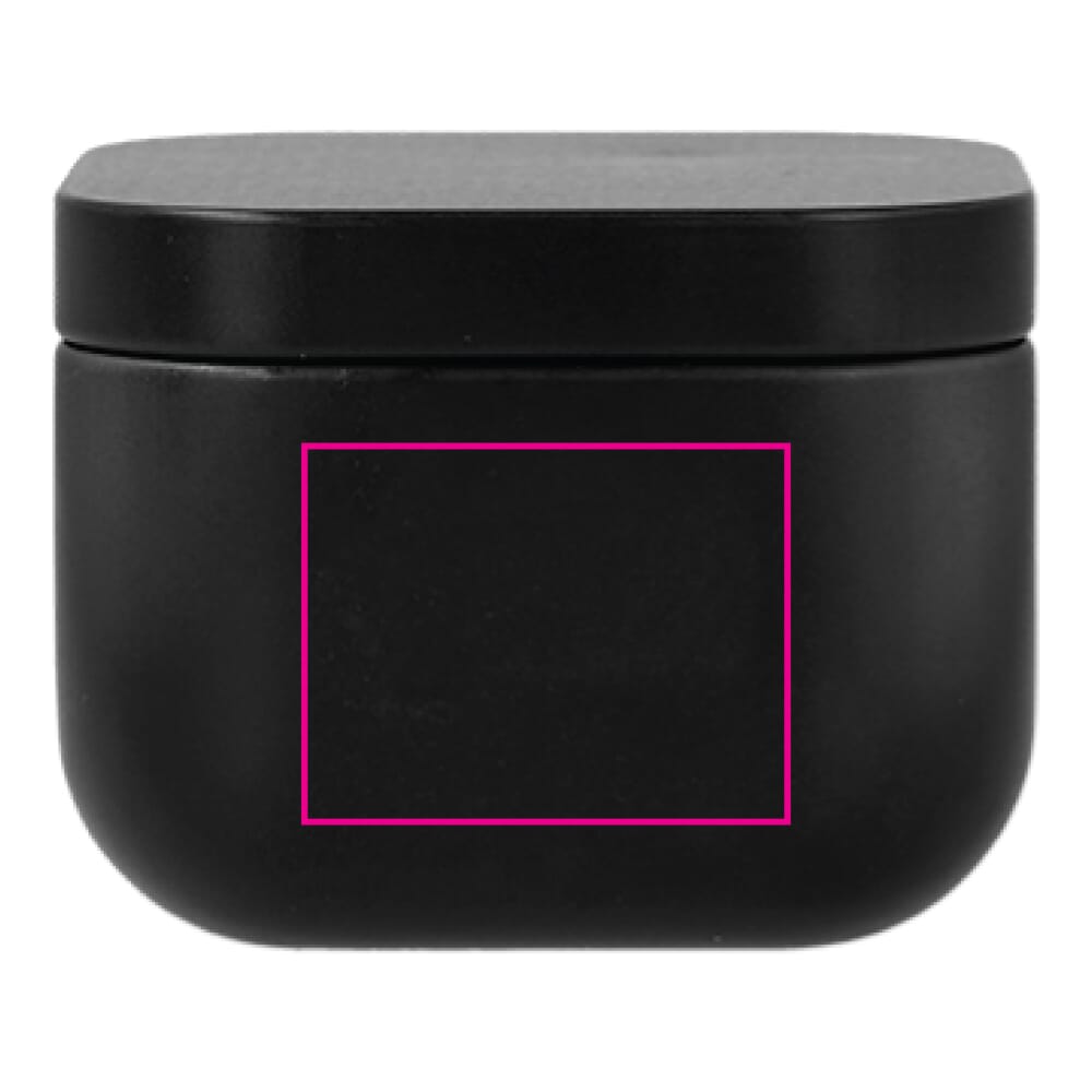 Diese Duftkerze besteht vollständig aus pflanzlichem Wachs. Das Wachs ist vegan und nachhaltig. Die Umverpackung ist eine Blechdose aus recycelten Materialien. Das Produkt ist kompakt und leicht zu transportieren. Die Brenndauer ist für einen kurzen Moment der Entspannung konzipiert. Die Kerze unterstützt dein Engagement für umweltbewusstes Marketing.