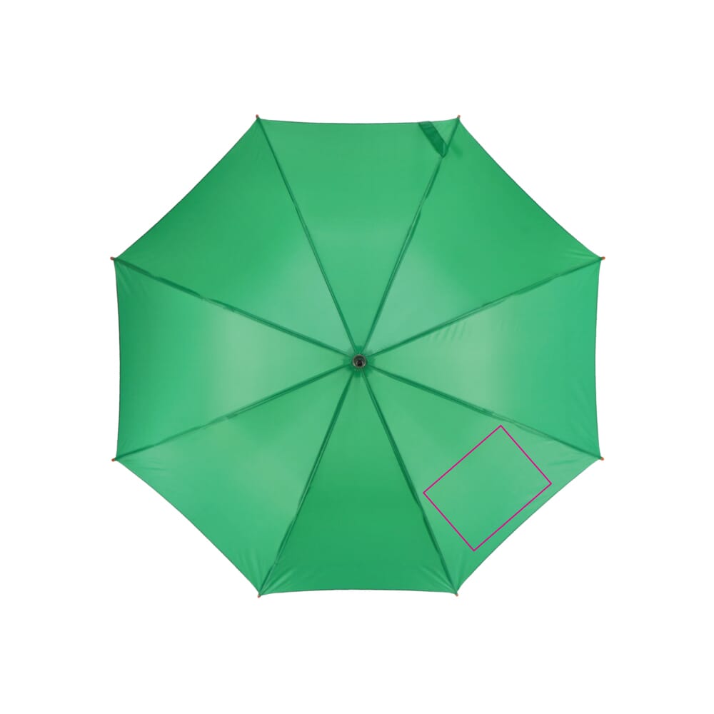 Du kannst den Aran Stockschirm individuell mit deinem eigenen Logo bedrucken lassen. Die Personalisierung erfolgt auf einem oder mehreren Keilen des Schirmdaches. Wähle die Farbe deines Schirmes passend zu deinem Corporate Design aus den verfügbaren Optionen. Sende uns die gewünschte Druckdatei für dein Firmenlogo zu. Wir beraten dich umfassend zur idealen Druckposition und zur passenden Drucktechnik. Ein professionell bedruckter Schirm dient als effektiver, mobiler Werbeträger.