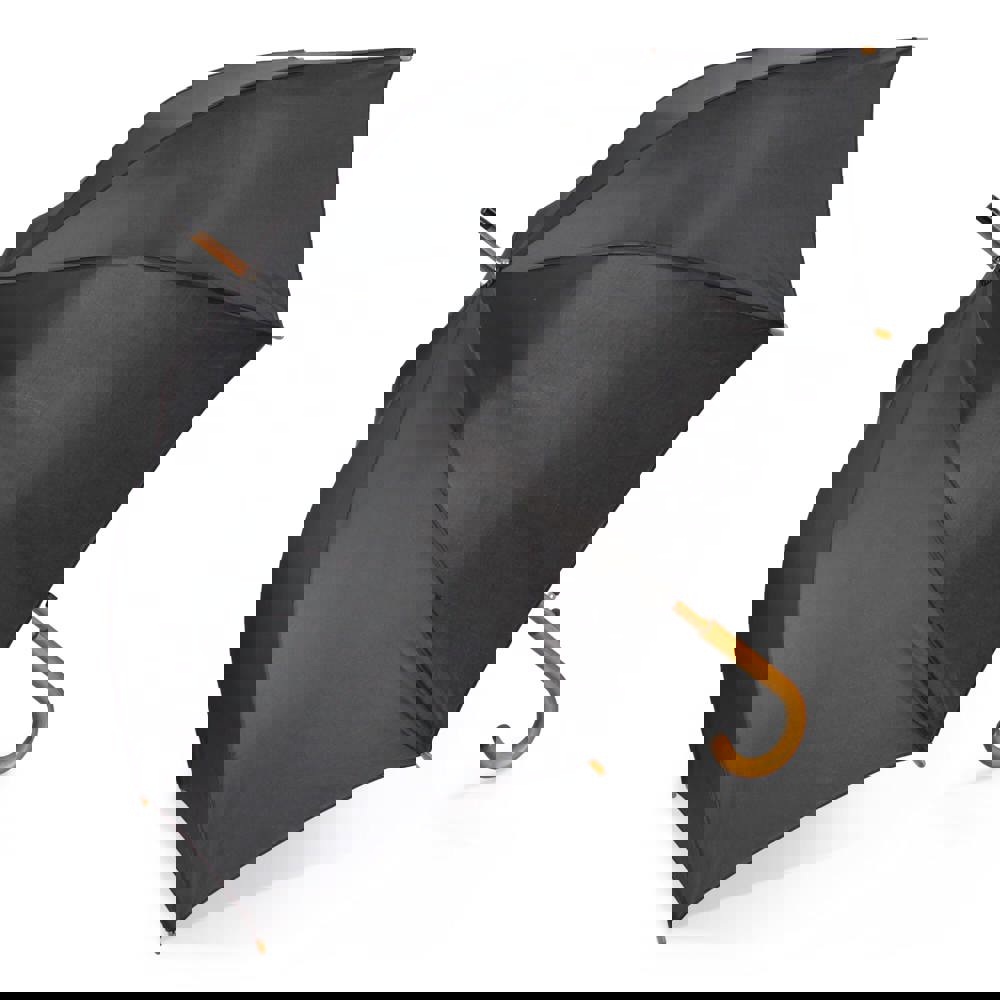 Der Schirm hat eine Standardgröße von 23 Zoll. Das Tuch besteht aus strapazierfähigem 190T Polyestergewebe. Der stabile Schaft ist aus Holz gefertigt. Der Komfort-Handgriff besitzt eine klassische Hakenform und besteht ebenfalls aus Holz. Der Rahmen ist mit Fiberglas-Komponenten verstärkt, um Windböen besser abzufedern. Der Schirm wird durch eine Automatikfunktion geöffnet. Das manuelle Schließen gewährleistet eine einfache Handhabung.