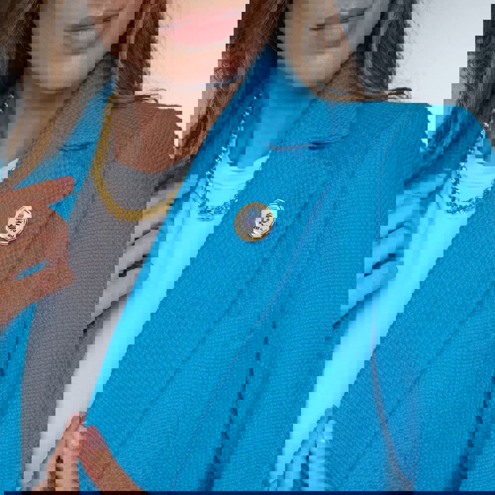 Dieser Metall-Pin ist rund geformt und hat einen Durchmesser von 20 mm. Der Pin verfügt über einen langlebigen Doming-Schutz. Diese transparente Harzschicht schützt dein Logo dauerhaft vor Abnutzung. Die Anstecknadel wird standardmäßig mit einem stabilen Schmetterlingsverschluss geliefert. Du kannst diesen Metall-Pin individuell mit deinem eigenen Logo bedrucken lassen. Wähle zwischen den Ausführungen Silbermatt oder Gold Satiniert.