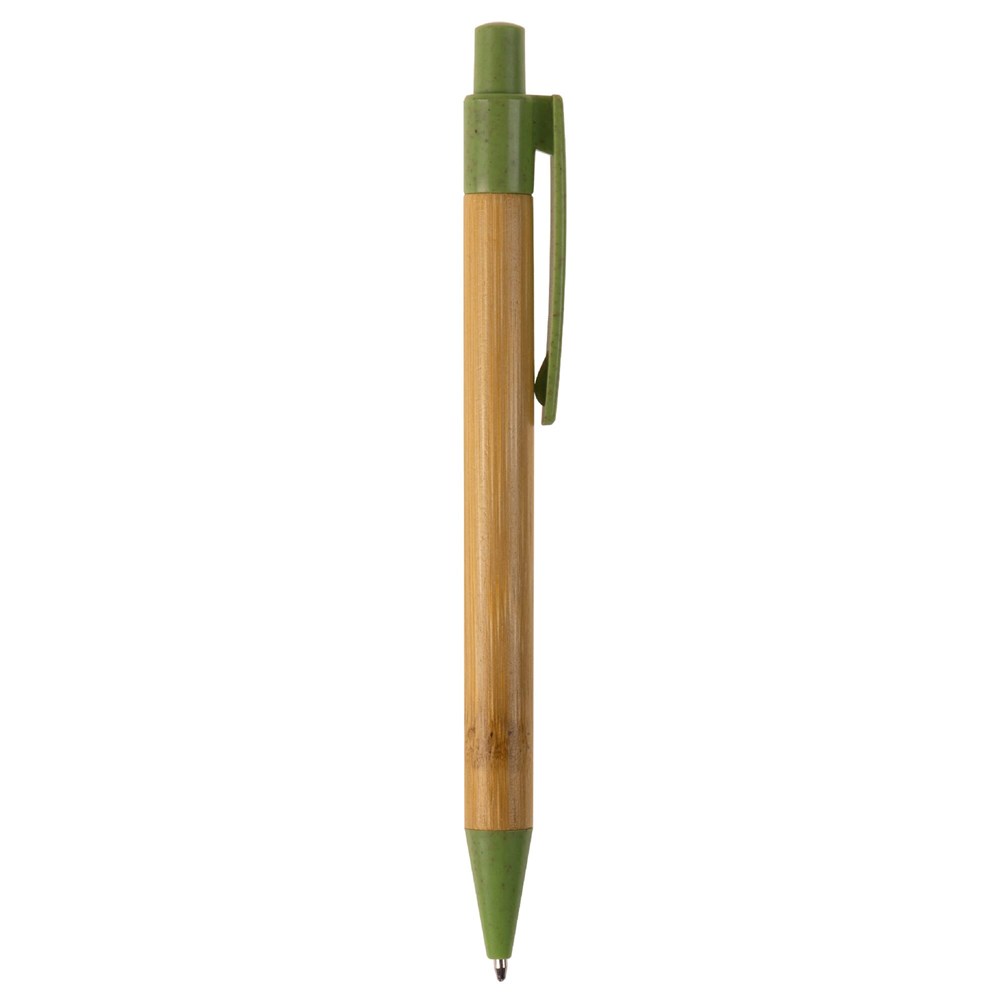 Dieser Kugelschreiber ist ein nachhaltiges Werbegeschenk. Er verbindet den natürlichen Look von Bambus mit umweltfreundlichen Komponenten. Clip, Drücker und Spitze bestehen aus Weizenstroh. Das Schreibgerät ist ideal für Unternehmen mit Fokus auf Nachhaltigkeit. Du erhältst einen funktionellen und hochwertigen Artikel für deine Promotion.