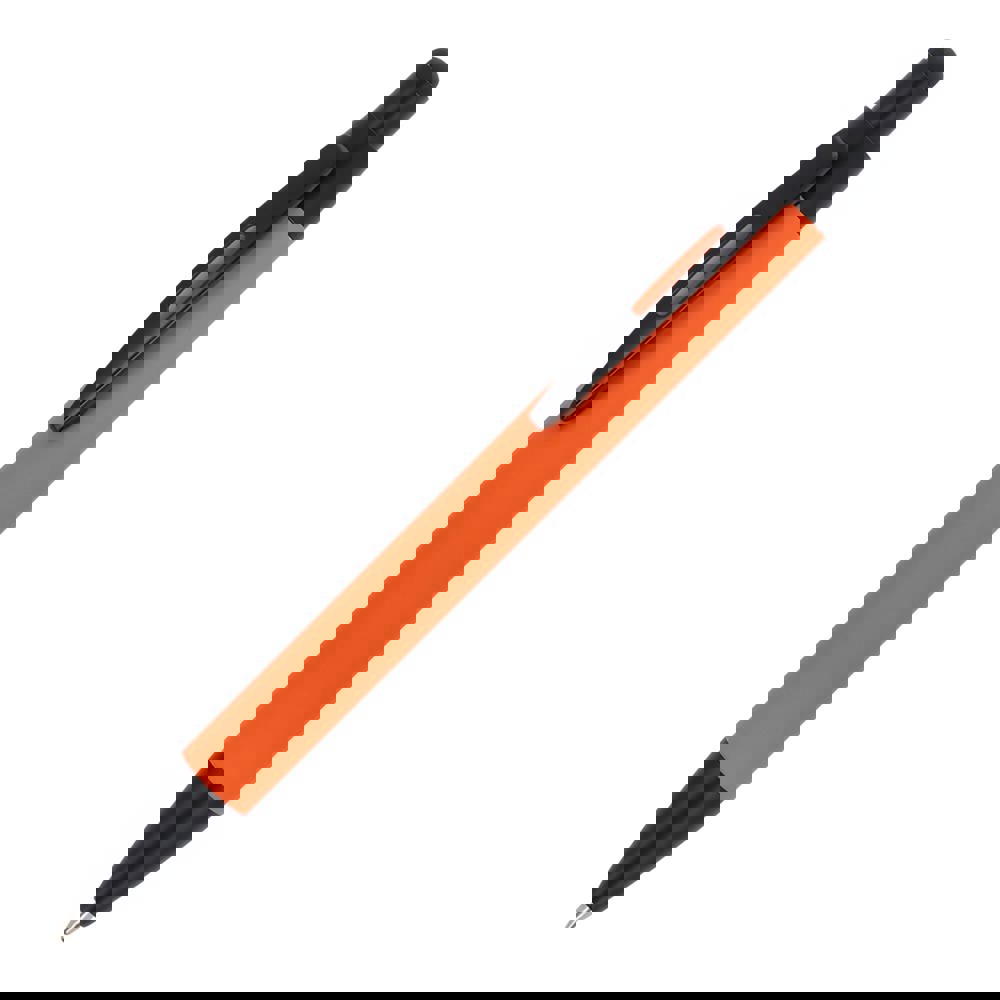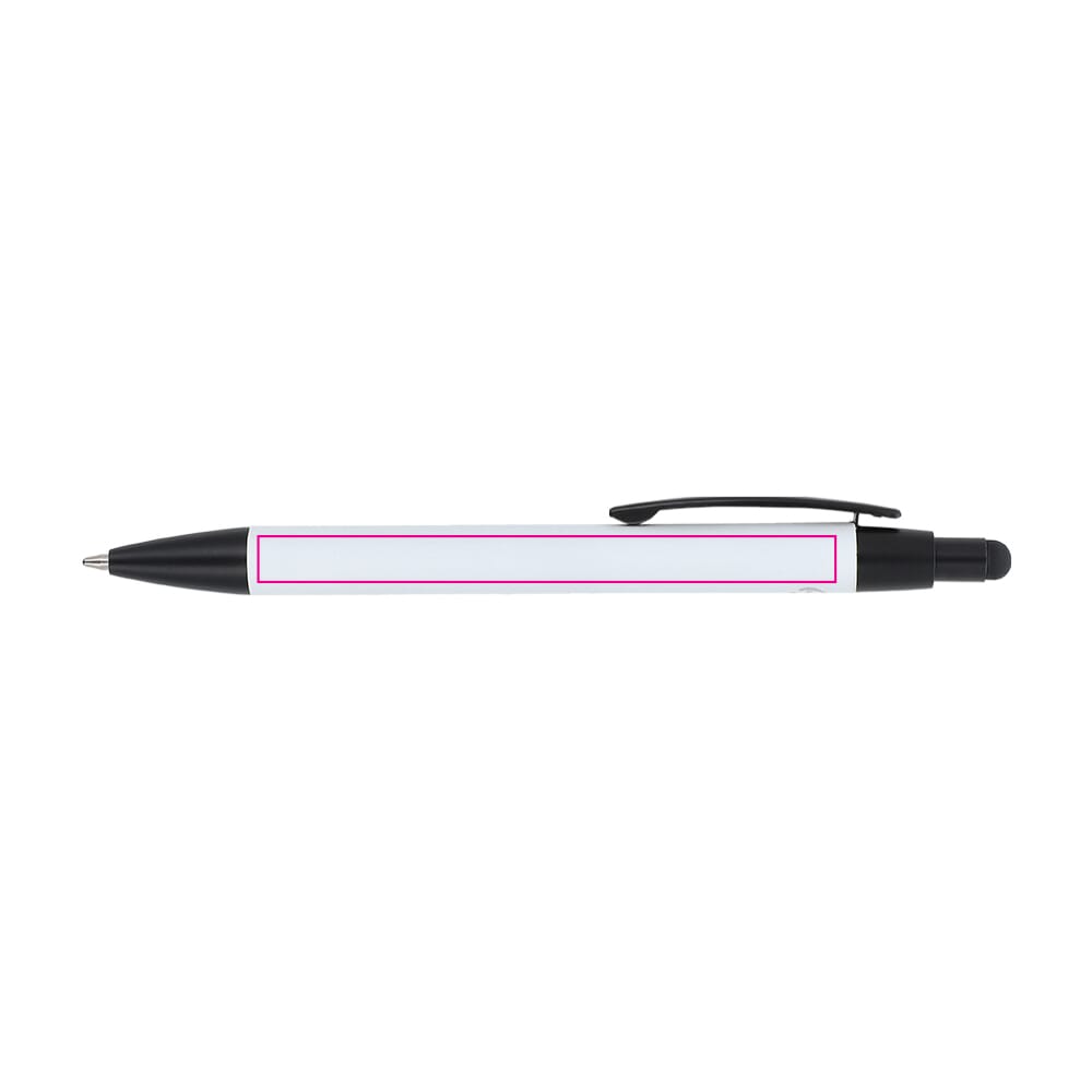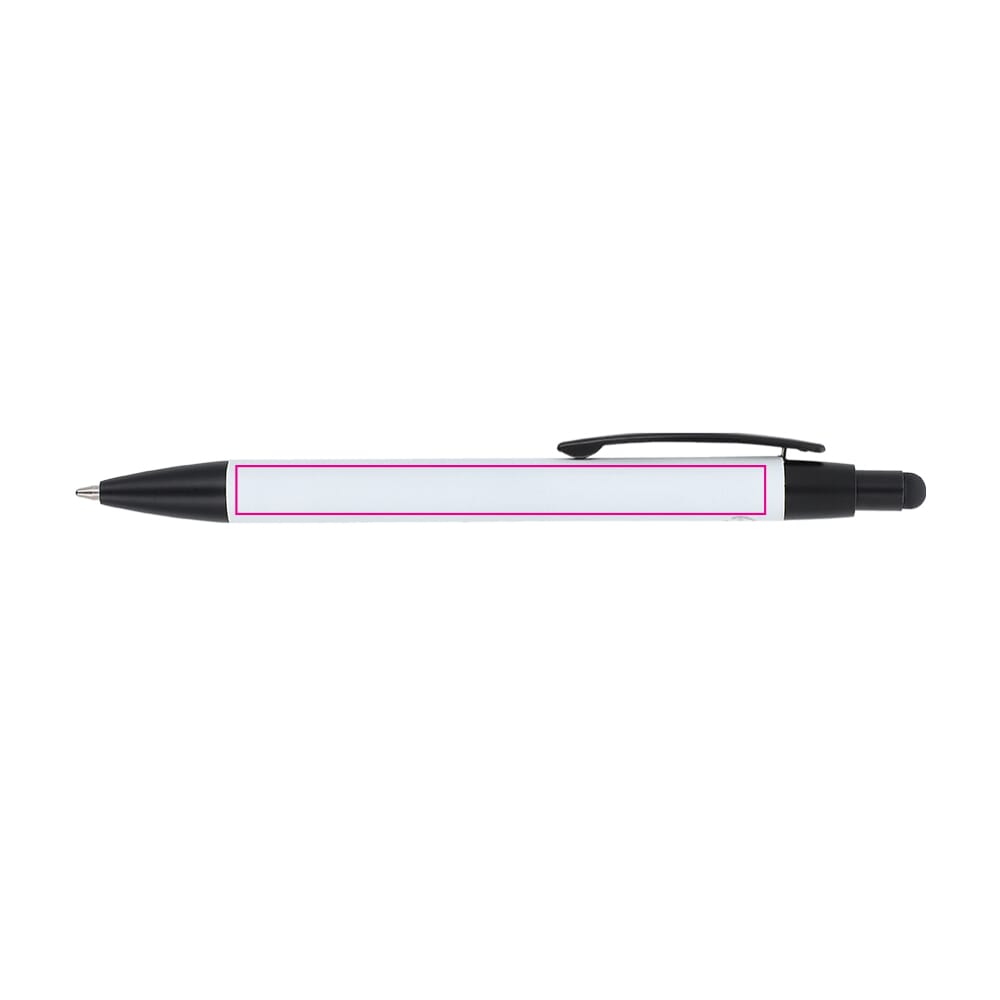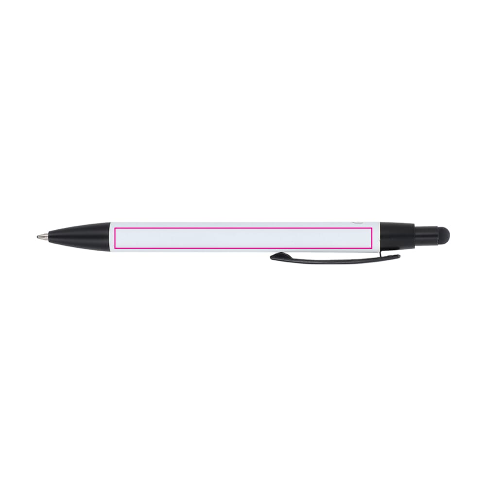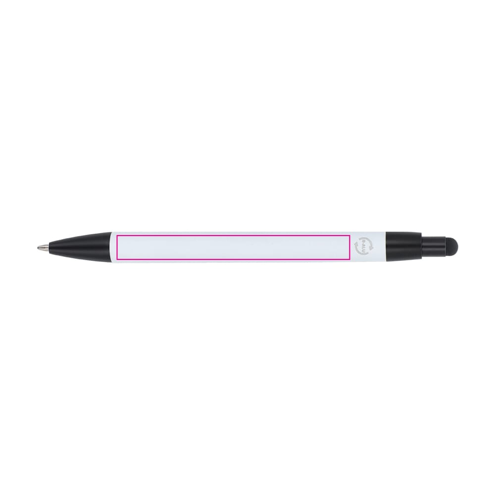 Material: Recyceltes Aluminium. Veredelung: Softtouch-Oberfläche. Funktion: Kugelschreiber und Stylus. Mine: Blaue Jumbo-Mine (austauschbar). Clip: Stabiler Metallclip. Verfügbare Farben: Weiß, Schwarz, Rot, Grau, Orange, Blau und Hellgelb. Das Produkt ist ein langlebiger Werbeträger.
