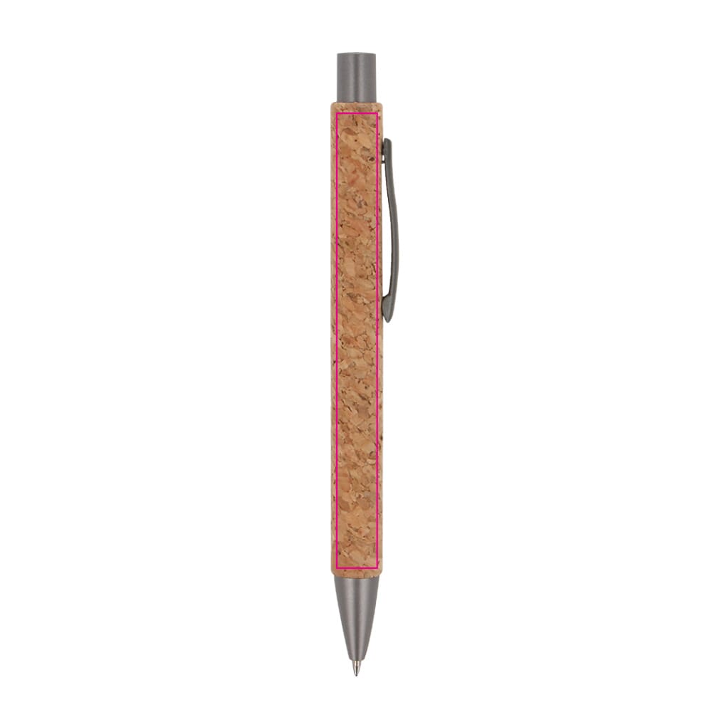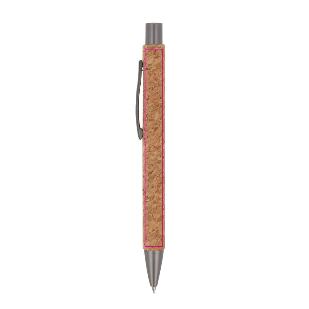 Material: Kork und Kunststoff. Farbe: Natur. Schreibfarbe der Mine: Blau. Der Kugelschreiber ist leicht und liegt gut in der Hand. Das Material Kork ist robust und hat eine angenehme Haptik. Das Design ist schlicht und modern. Es unterstützt die nachhaltige Ausrichtung deiner Marke.