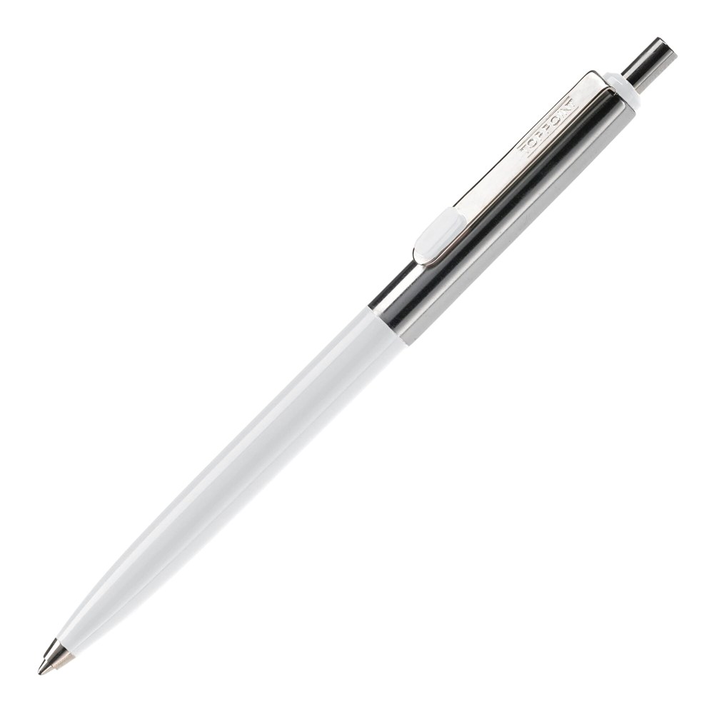 Der Kugelschreiber verfügt über ein stabiles Metallgehäuse. Er ist mit einer hochwertigen Metall-Jumbo-Mine ausgestattet. Die Schreibfarbe der Mine ist standardmäßig blau. Das Gehäuse ist in den Farben Weiß, Schwarz, Dunkelblau und Dunkelrot verfügbar. Die verchromten Details unterstreichen die Qualität. Die Jumbo-Mine garantiert eine lange Schreibdauer.