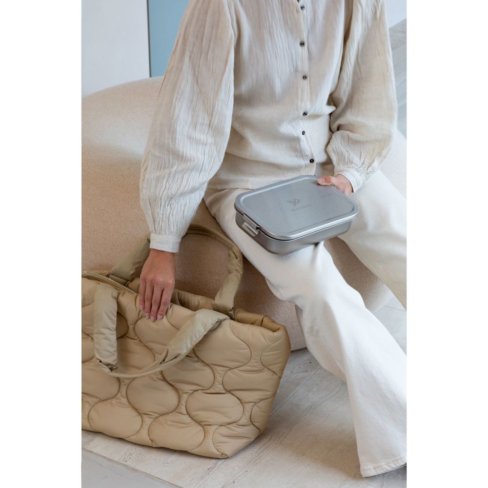 Die Brabantia Bento Lunchbox ist ein hochwertiger Behälter für den täglichen Transport deiner Mahlzeiten. Sie besteht aus robustem, silberfarbenem Edelstahl (RVS). Das Produkt besitzt eine Kapazität von 2.000 ml. Die Box verfügt über einen herausnehmbaren Trenner. Das Trennelement hält verschiedene Speisen getrennt und sauber. Diese Lunchbox kann mit deinem individuellen Logo veredelt werden.