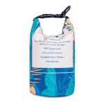 Die Tasche erfüllt den Wasserbeständigkeitsstandard IPX6. Das bedeutet, sie hält starkem Strahlwasser aus allen Richtungen stand. Bitte halte die Tasche nicht unter Wasser. Der Verschluss erfolgt über ein robustes Rolltop-System. Das Material ist widerstandsfähig und transparent. Das 2,5-Liter-Volumen bietet Platz für wichtige kleine Gegenstände. Die Tasche verfügt über ein klares, berührungsempfindliches Smartphone-Fenster.
