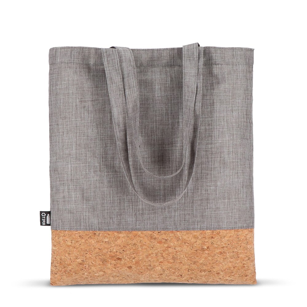 Diese Beschreibung bezieht sich auf die nachhaltige R-PET Kork Tragetasche. Die Tasche misst 35 x 40 cm. Sie ist aus 300D recyceltem PET (R-PET) und Naturkork gefertigt. Du erhältst damit ein umweltfreundliches und haltbares Werbemittel. Die R-PET Kork Tragetasche ist ideal für den täglichen Gebrauch.