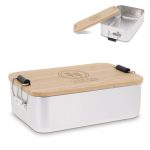Diese Lunchbox besteht aus robustem Aluminium. Der Deckel ist aus nachhaltigem Bambus gefertigt. Die Box dient zum Transport deiner Mahlzeiten wie Frühstück oder Mittagessen. Sie ist ideal als stilvolles Werbegeschenk für deine Kunden. Die Kombination der Materialien unterstreicht dein Umweltbewusstsein.