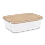 Diese Glas-Lunchbox mit Bambusdeckel ist ein hochwertiger und hygienischer Werbeartikel. Sie dient dem sicheren Transport von Speisen und Snacks. Die Lunchbox besteht aus robustem, transparentem Glas. Der Deckel ist aus nachhaltigem Bambus gefertigt. Du erhältst ein stilvolles Produkt, das Langlebigkeit und natürliche Ästhetik vereint. Du kannst diese Glas-Lunchbox mit deinem eigenen Logo bedrucken lassen.