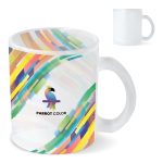 Das Produkt besteht aus widerstandsfähigem Glas. Die Tasse hat eine robuste, blickdichte Mattglas-Veredelung. Das Fassungsvermögen beträgt 335 ml. Die Oberfläche ist optimal für den brillanten Sublimationsdruck beschichtet. Dies sichert dir eine hohe Waschbeständigkeit der Werbetasse.