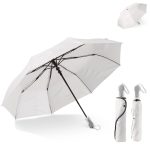 Dieser automatische Falt-Regenschirm dient als effektives Werbemittel. Der Schirm verbindet hohen Nutzungskomfort mit stabiler Bauweise. Er öffnet sich schnell per Auto-Open-Funktion. Das weiße Schirmtuch aus Pongee Polyester bietet eine große Fläche für Ihre Markenbotschaft. Sie erhalten einen langlebigen und funktionalen Werbeträger.