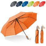 Größe: 22 Zoll. Funktion: Auto-Open. Material Bezug: Pongee Polyester. Material Rahmen: Teilweise Fiberglas. Der Schirm ist in den Farben Schwarz, Rot, Orange, Blau, Dunkelblau und Hellgrün erhältlich. Die robuste Bauweise erhöht die Lebensdauer. Das Produkt entspricht den Anforderungen an langlebige Werbeartikel.